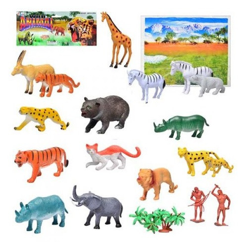 Цей набір складається з дуже красивих диких тварин, а саме: жираф, гепард, зебра, носоріг,слон, тигр, ведмідь, лев і інші.Він підходить для розвиваючих занять з дитиною, допомагає йому знайомитися з навколишнім світом, розвивати моторику, тактильні навички. Іграшка повністю безпечна для здоров'я дитини і зроблена з якісних матеріалів.